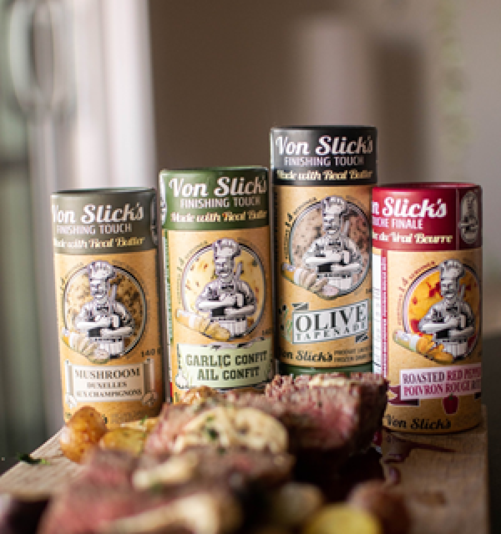 Rob and Lan – co-founders of Von Slick Finishing Butter – had never met before becoming colleagues 8 years ago. Through that, a friendship grew.. as well as a belief that their new concept – premium ingredients infused into real butter with really cool push-tube packaging – could actually make some noise in the retail world!